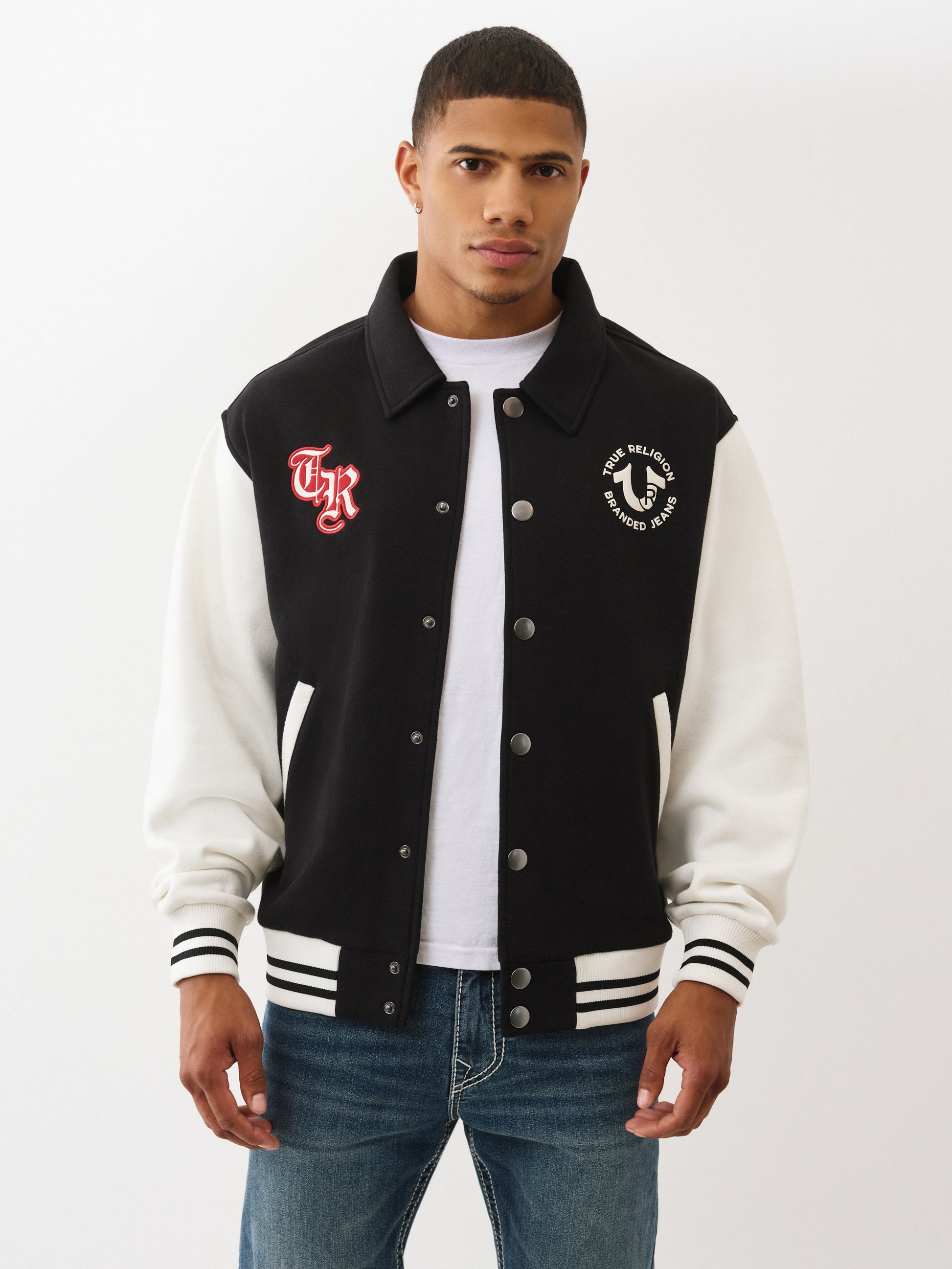 COLLARED PATCH FLEECE VARSITY